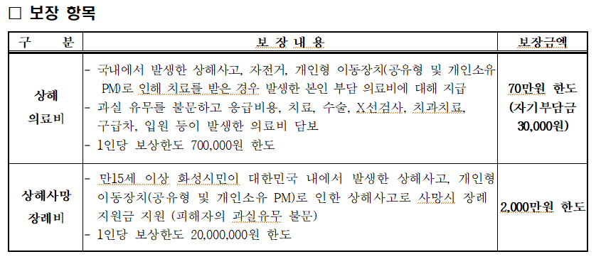 심지어, 자전거 사고도, PM (Personal Mobility) - 킥보드등 타다가 다친것도 받을 수 있습니다.